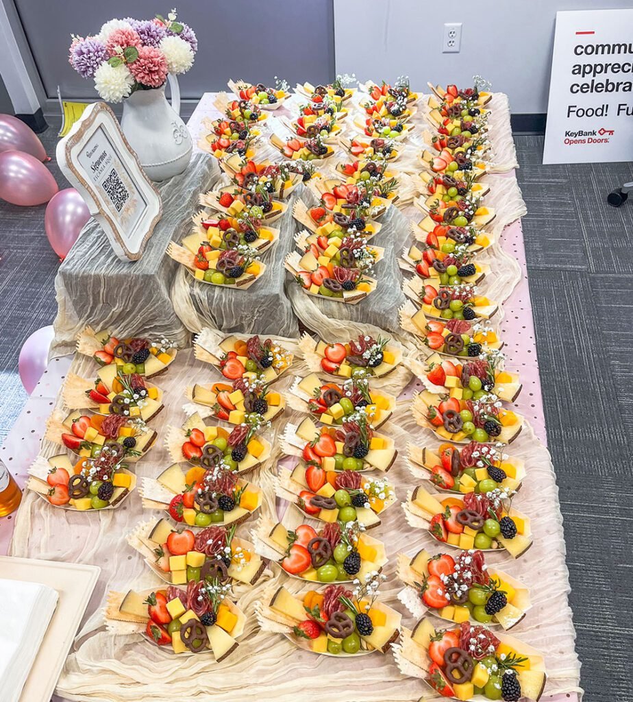 We have fruit, mini sandwiches, veggies and sweet platters that